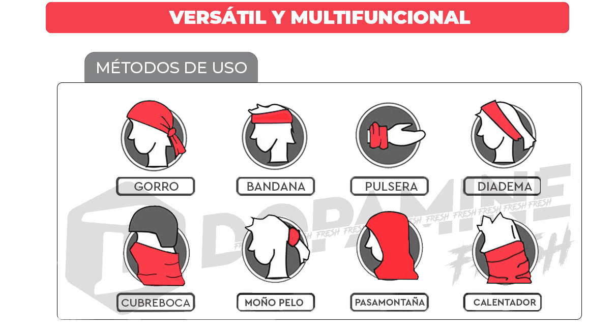 Producto multifuncional diseñado para uso durante todo el año. Protección ideal contra el frío durante actividades al aire libre de alta intensidad, running, senderismo, equitación, ciclismo o andar en moto. Elastico se ajusta la mayoría de los cuellos.